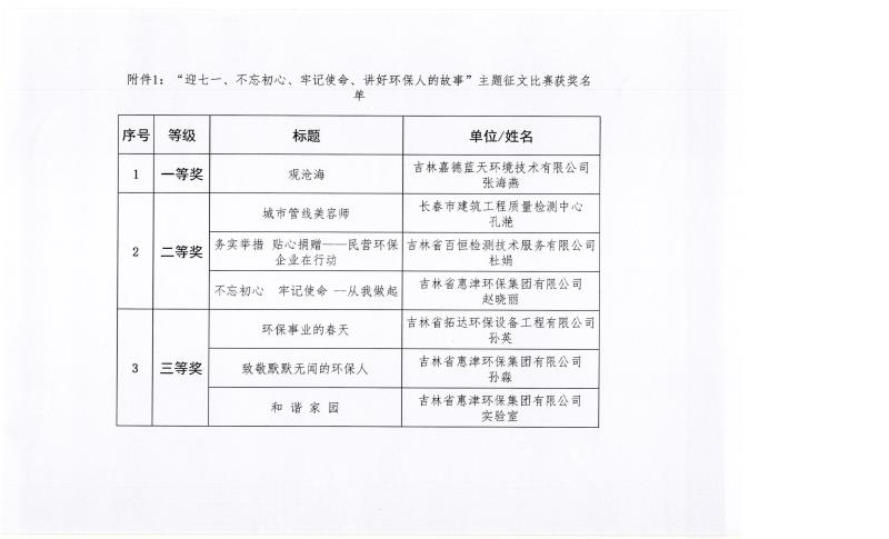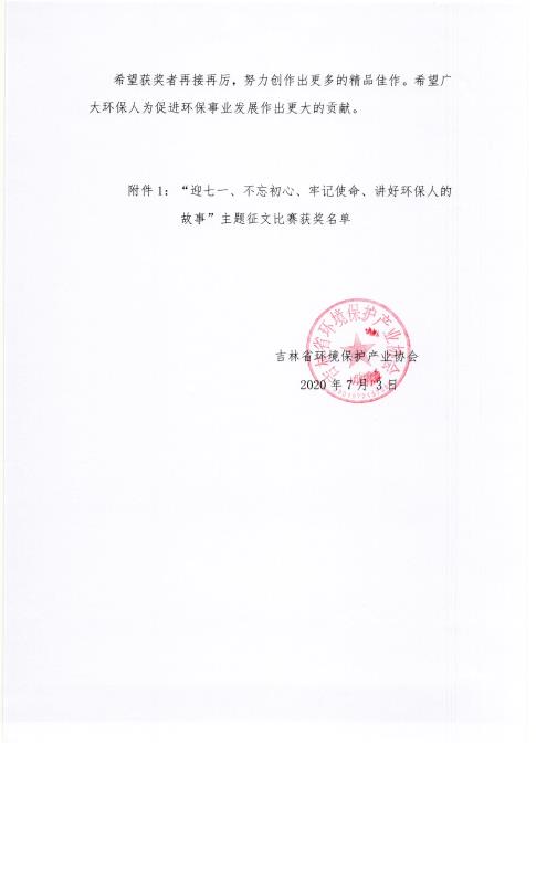 恭祝吉林省拓达环保设备工程有限公司员工孙英在吉林省环保产业协会举办的2020年“迎七一、不忘初心、牢记使命、讲好环保人的故事”主题征文活动中获得三等奖,获奖文章如下: