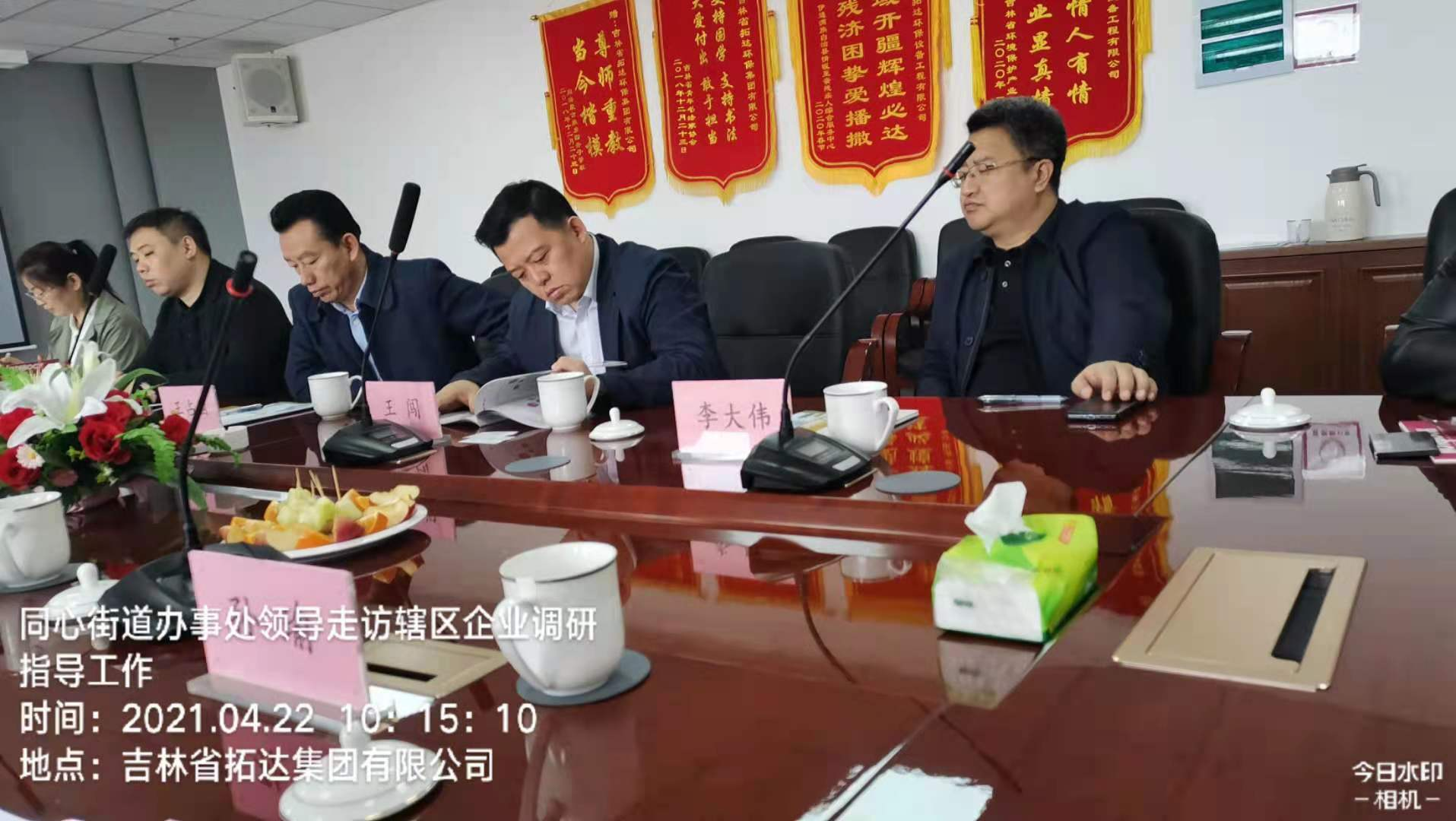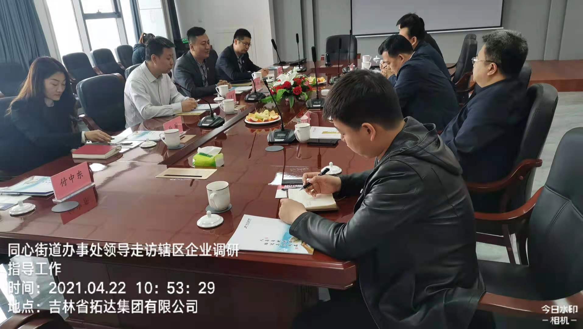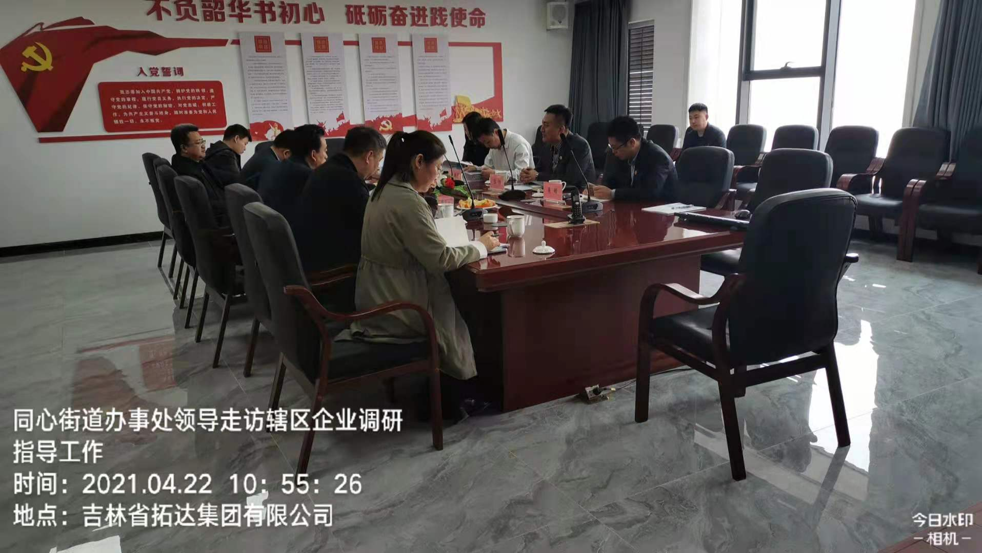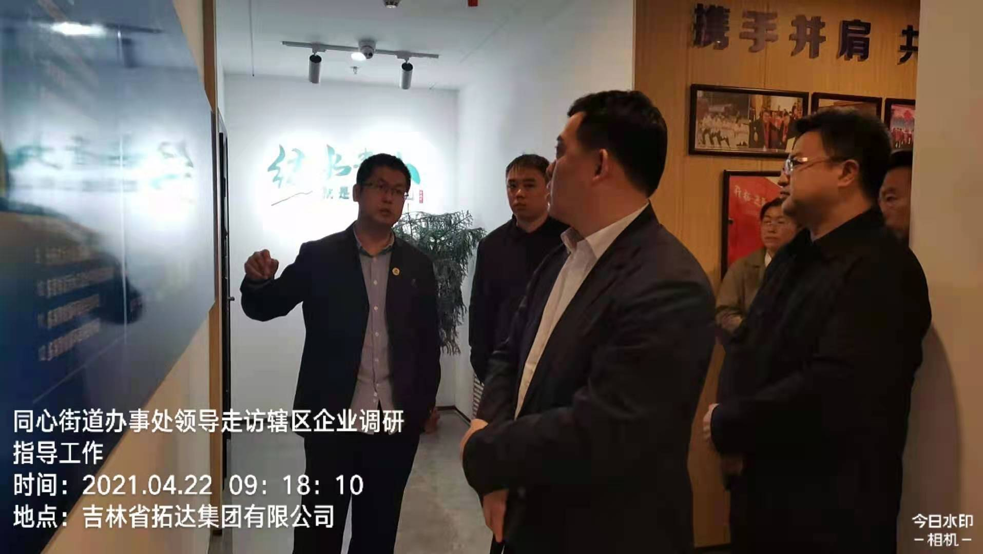 4月22日,同心街道党工委书记王闯、办事处主任李大伟、副主任王占国、西部新城企业服务办公室主任董丰嘉、经济科科长焦娜、招商科科长陆鑫、天香社区党支部书记于洪玲一行7人,对辖区吉林省拓达集团有限公司企业发展及工作进行调研。