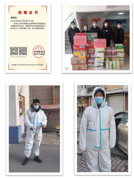 作为公主岭的一份子,疫情发生后,集团公司立即组织募捐活动,集团公司向公主岭市慈善总会捐赠20万元;集团公司董事长、长春市人大代表邵春彦同志向公主岭市慈善总会捐赠40万元;集团公司总经理、市政协委员张恒向公主岭市慈善总会捐款1000元;水务公司工会及非公党建支部向公主岭市慈善总会捐赠5620元;向公主岭市河南街道永红社区捐赠价值3千余元疫情防控生活物资。并且动员派出志愿者支援市住建局卡点执勤,积极支援公主岭市防疫工作。